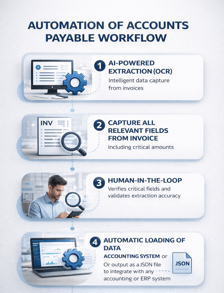 Al and API enabled automation of data updates to the accounting or ERP system - Human in the loop for review