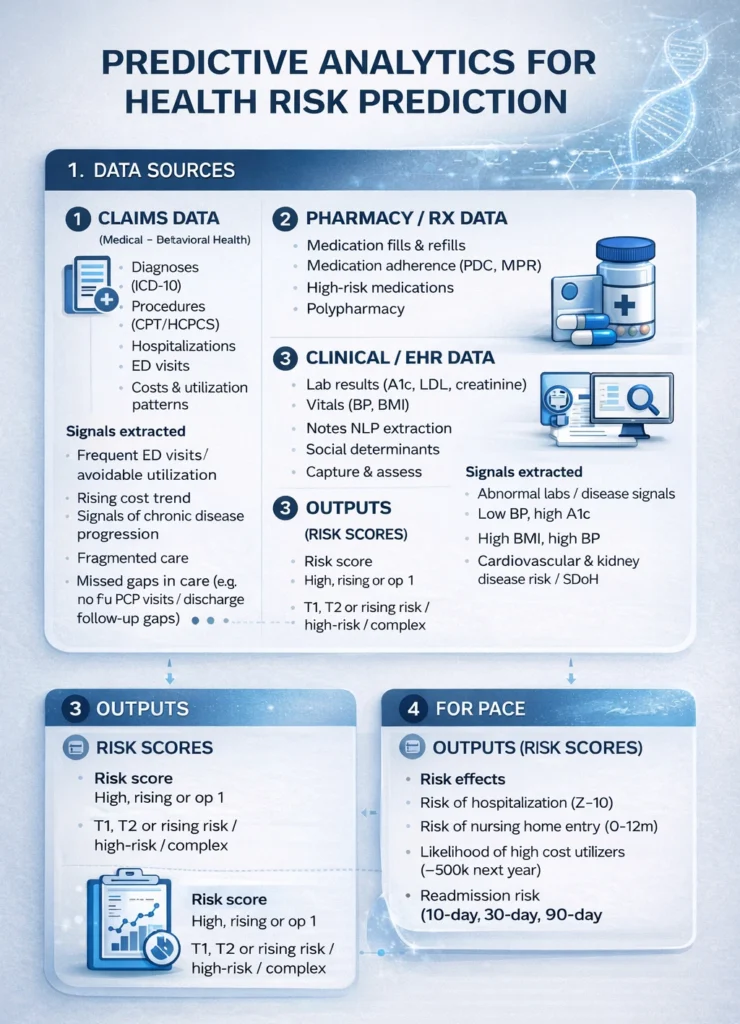 ⦁ Based on risk scores, ability to predict risk of developing chronic conditions such as diabetes, hypertension etc.